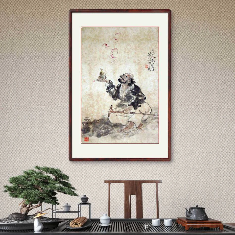民俗空间 / 茶馆:装裱成镜片(平板装裱),挂于民俗展厅或中式茶馆,以铁拐李的民间形象和写意笔墨,营造 “接地气、有韵味” 的民俗文化氛围,契合空间的烟火气与趣味性;