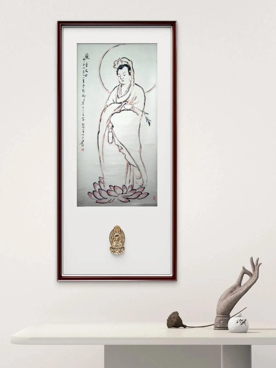 • 首选中式传统立轴装裱:选用浅灰或米白色绫底,搭配檀木轴头,凸显清雅禅意;若用于现代空间,可选择镜框装裱,配黑色哑光铝合金框与白色卡纸,更显简洁大气。
