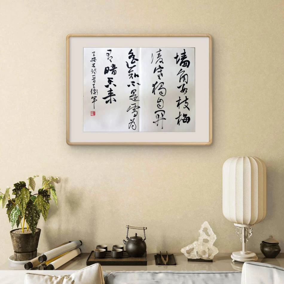 墙角数枝梅,凌寒独自开。 遥知不是雪,为有暗香来。