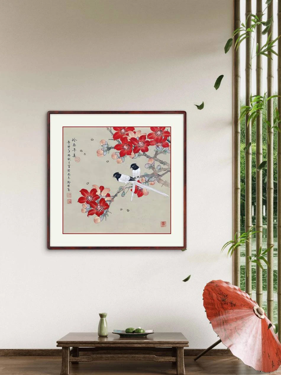 客厅 / 书房:装裱成小品镜框,挂于客厅主墙或书房雅致角落,以木棉喜鹊的吉祥寓意和工笔风格,营造 “吉祥热烈、格调雅致” 的文化氛围,尤其适合追求传统吉祥与工笔艺术的空间;