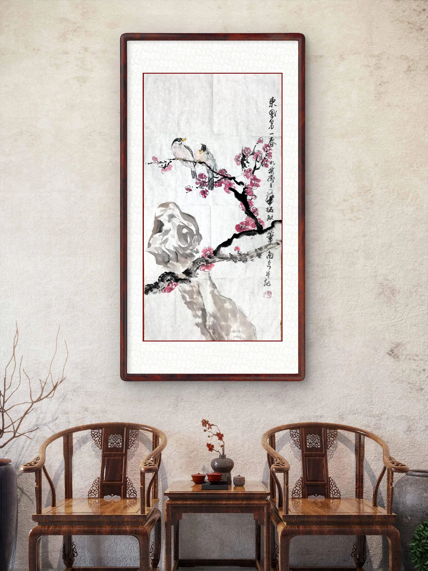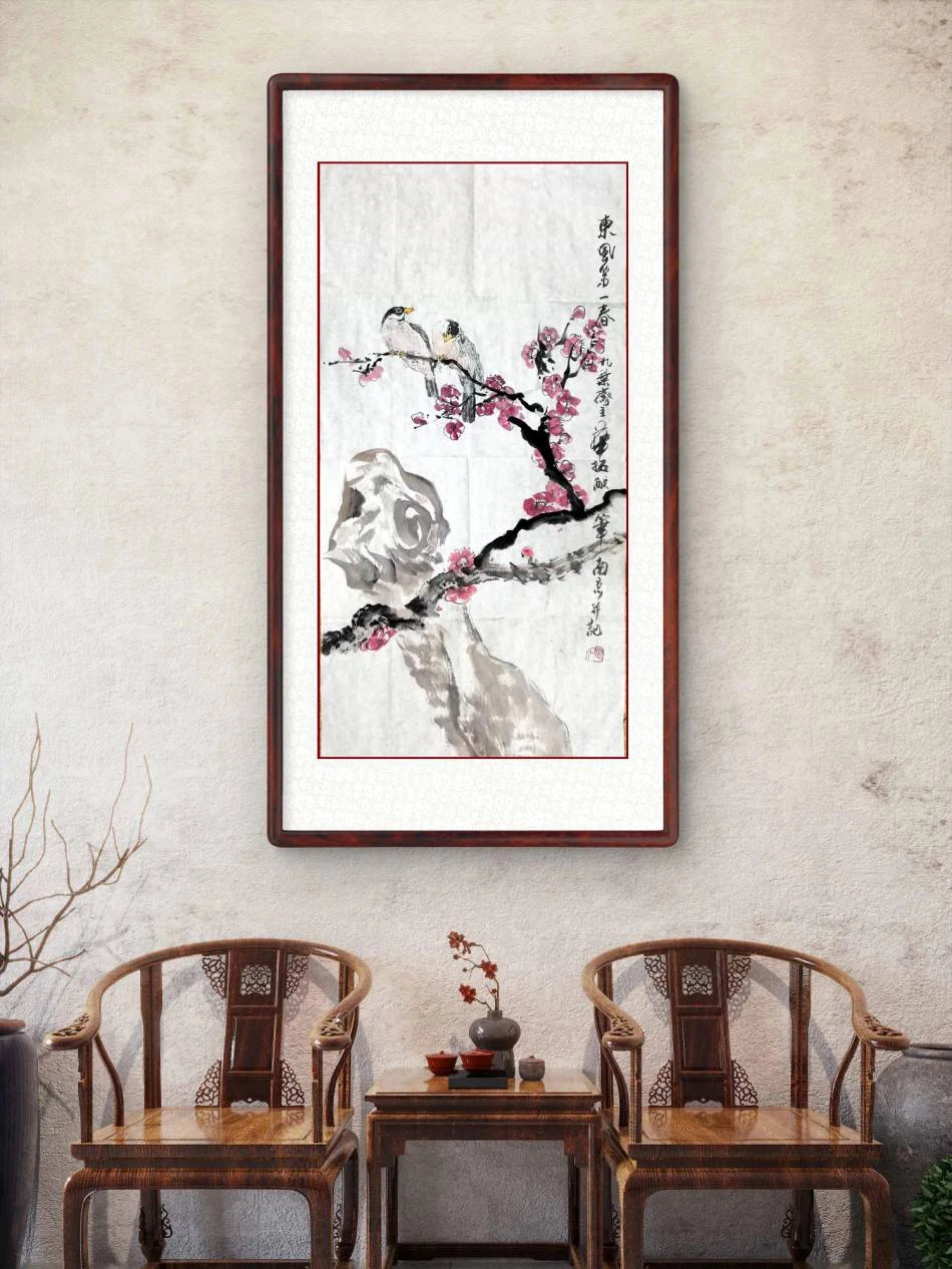 书房:悬于书桌旁或书架墙,借梅花高洁、鸟儿灵动,营造宁静且富有诗意的阅读创作环境,助于静心思考、激发灵感 。