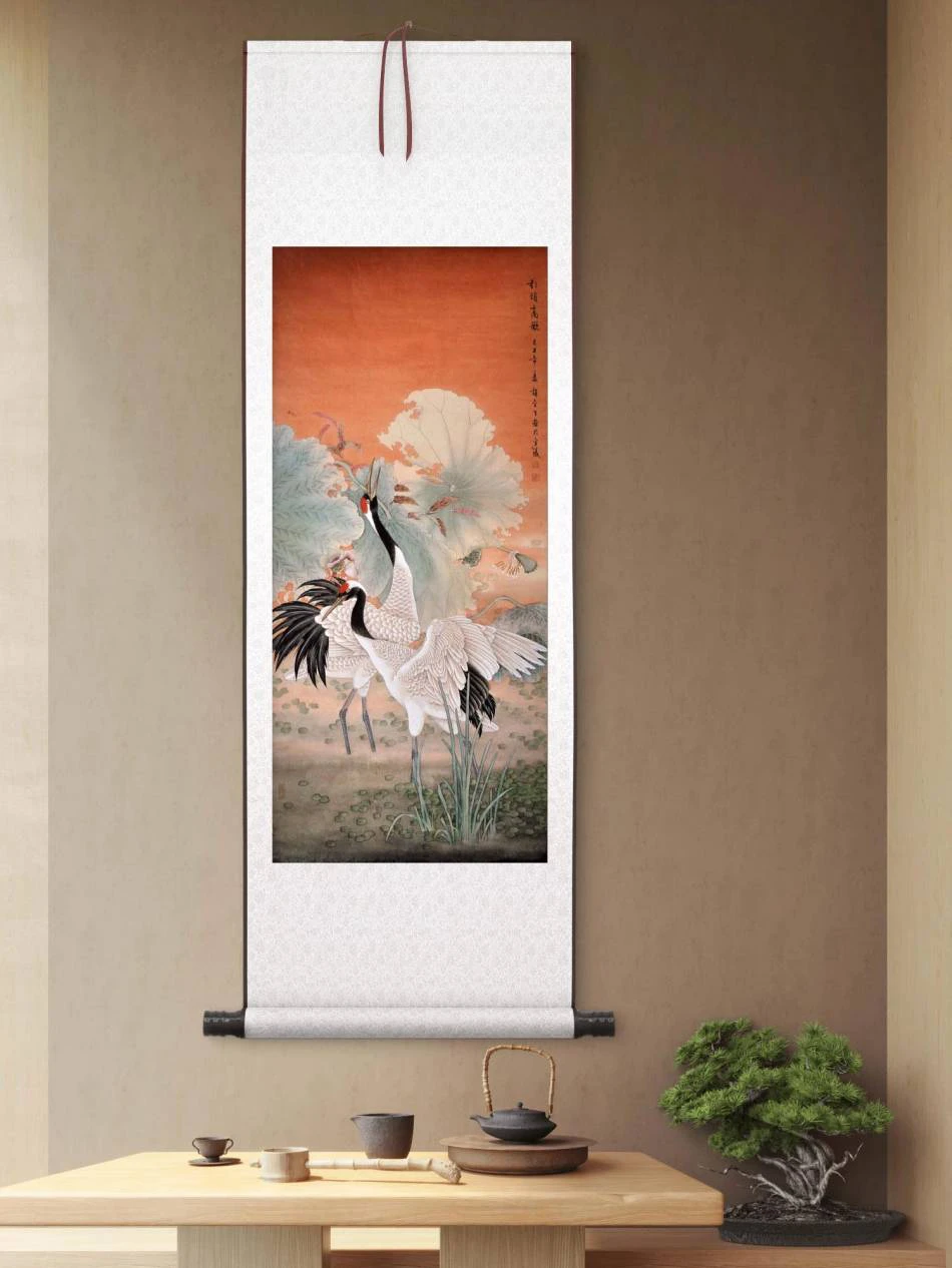 客厅 / 书房:装裱成立轴(传统卷轴样式),挂于客厅主墙或书房,以仙鹤荷花的吉祥寓意和工笔的典雅风格,营造 “福寿清雅、格调高贵” 的文化氛围,尤其适合追求传统吉祥与工笔艺术的空间;
