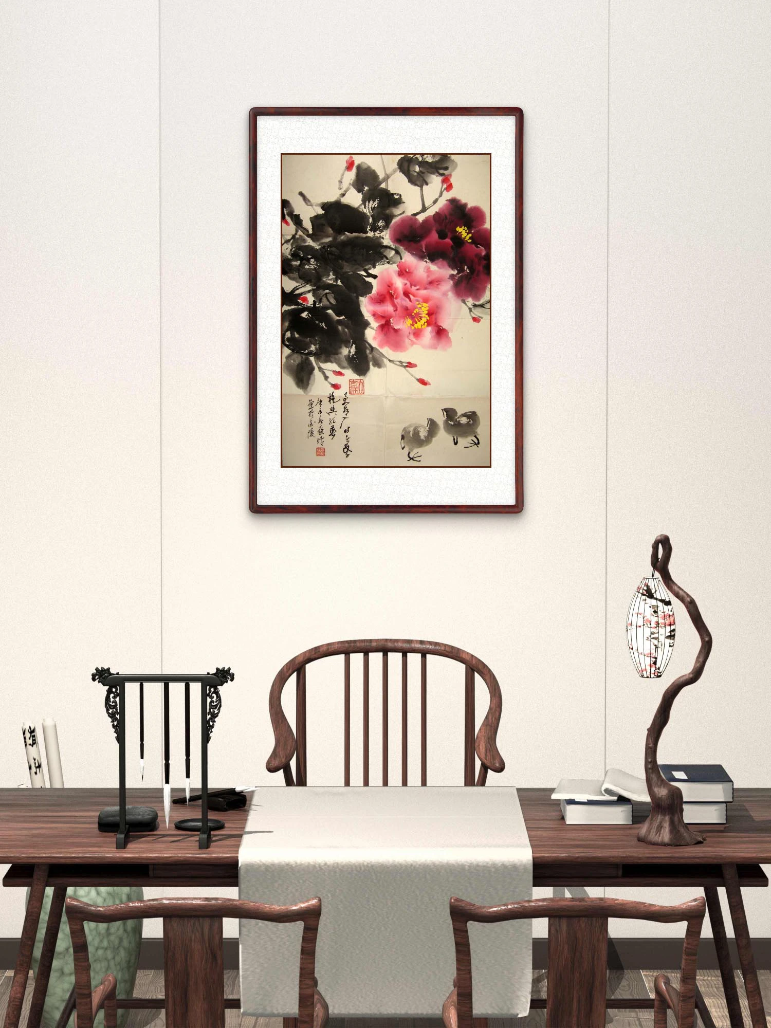 赠礼场景:若作为文化礼品赠送给亲友,装裱成卷轴或镜框,既显艺术品位,又因 “牡丹富贵、雏鸡生机” 的寓意,传递 “生活富贵、生机蓬勃” 的祝福;