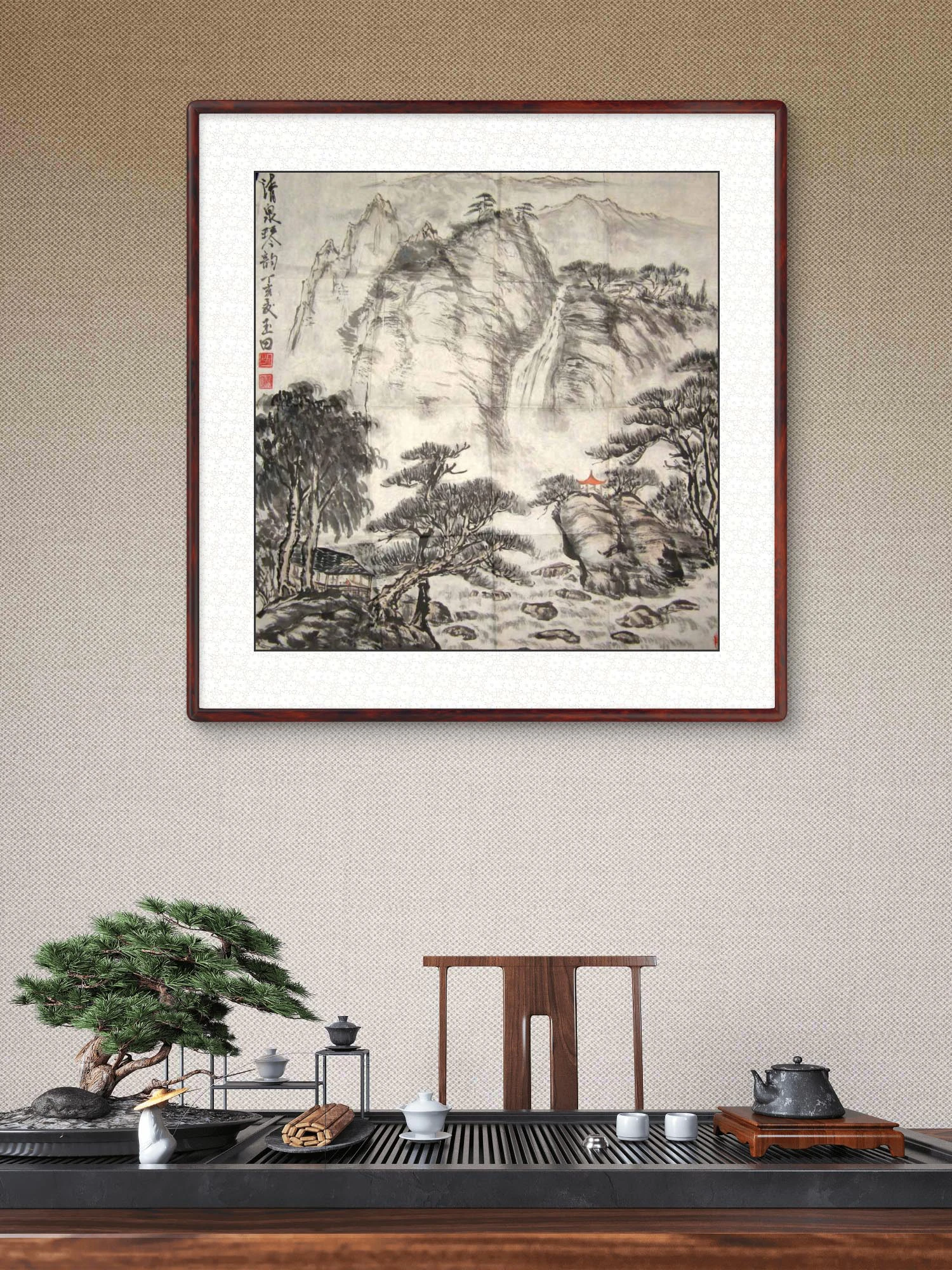 赠礼场景:若作为文化礼品赠送给友人,装裱成卷轴或镜框,既显艺术品位,又因 “清泉琴韵” 的寓意,传递 “心境悠然、隐逸清雅” 的祝福;