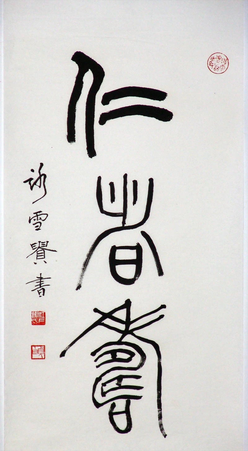 借篆书的 “仪式感”,强化 “仁者寿” 的精神分量 —— 篆书的庄重感,能让 “仁德长寿” 的祝福与哲思更具感染力,区别于行草的随性、隶书的平实。