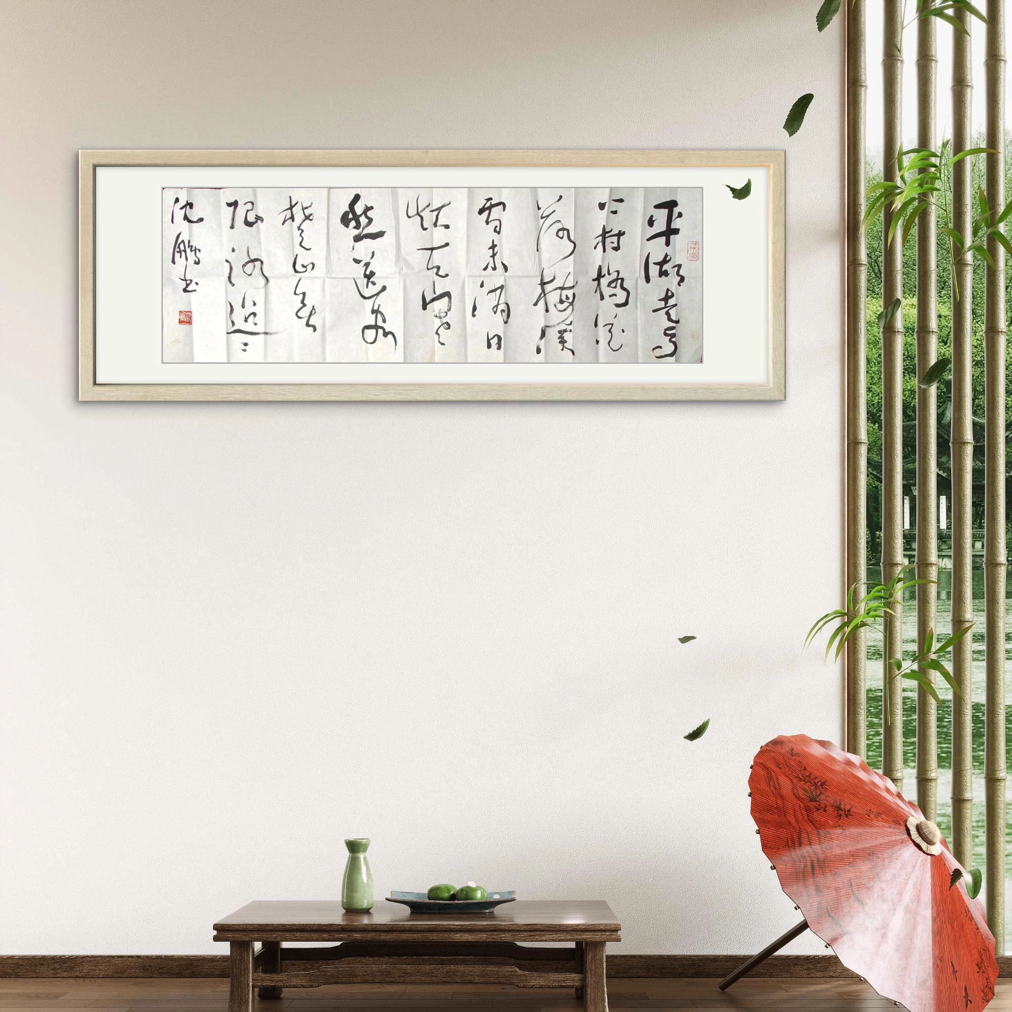 介绍:沈鹏草书作品技法精湛,用笔、墨法、章法都达到很高水准,充分展现了沈鹏草书的艺术魅力与创作风格。在草书的笔法运用、气韵营造、墨法创新上有独特之处,体现出书写者深厚的书法功底与艺术创造力,是一幅兼具艺术价值与文化内涵的草书佳作,对于研究现代草书创作、沈鹏书法艺术风格有重要参考意义,展现了中国草书艺术 “纵逸洒脱,抒情达意” 的独特艺术感染力 。 |