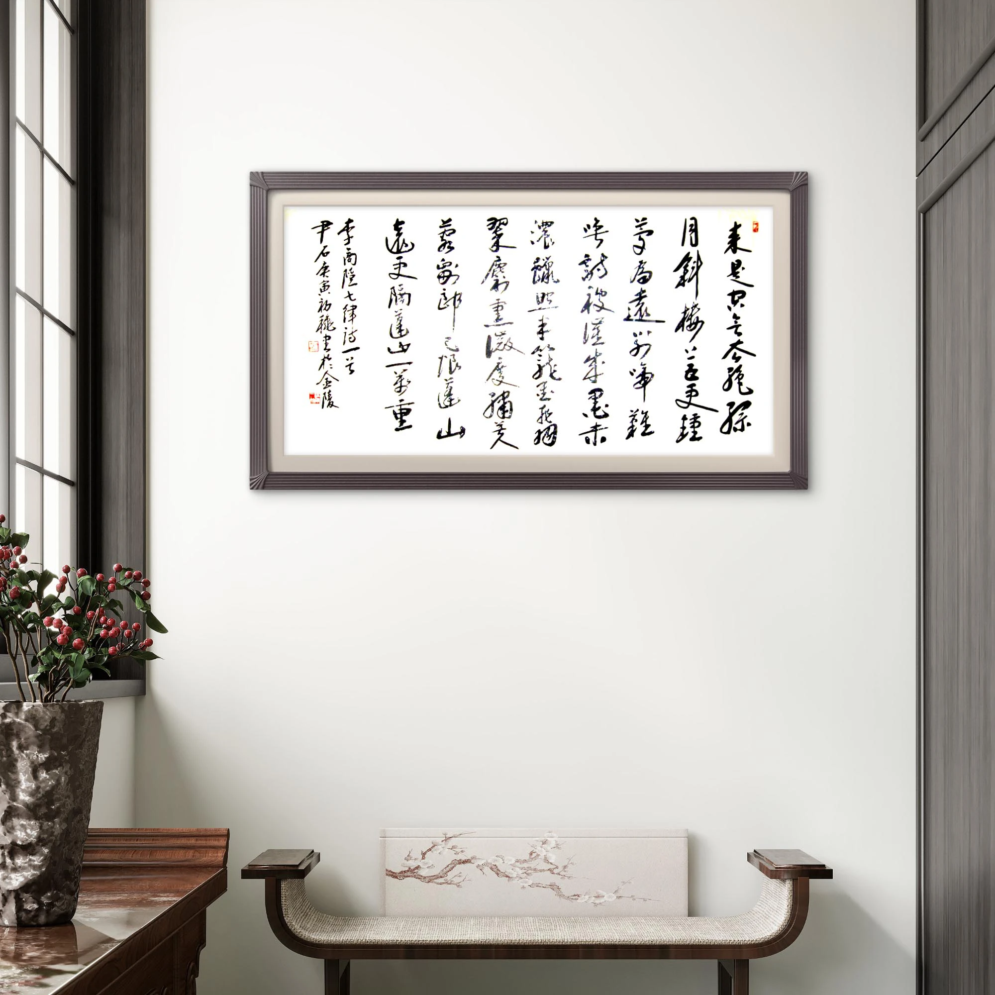 这首《无题》是李商隐经典诗作,情感细腻、意境深邃。尹石以行草书书写,是对经典文学的致敬传承,借行草形式传递诗中复杂情感与深邃意境,体现书法 “以书载文、以文传情” 传统,反映书写者在特定时地,借经典诗词与行草书法抒情表意的创作情境 。尹石老师的笔势灵动、墨韵生动,把李商隐诗的细腻与行草书的奔放融合,把这首诗的味道用书法写出来了,越品越有韵味 。