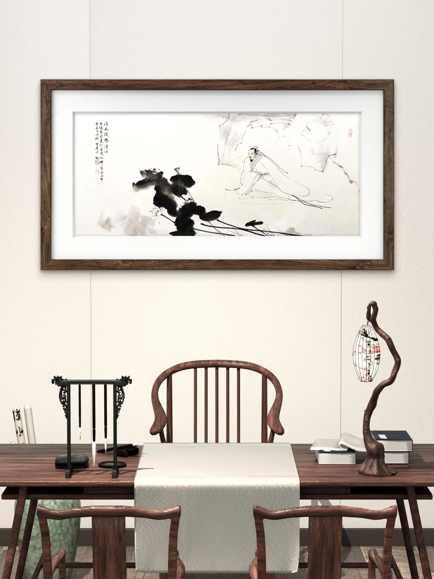 书房 / 客厅:装裱成横幅镜片或卷轴,挂于书桌对面或客厅雅致角落,以高士荷景的隐逸意境和水墨风格,营造 “清雅超然、格调空灵” 的文化氛围,尤其适合喜爱文人画与水墨艺术的空间;