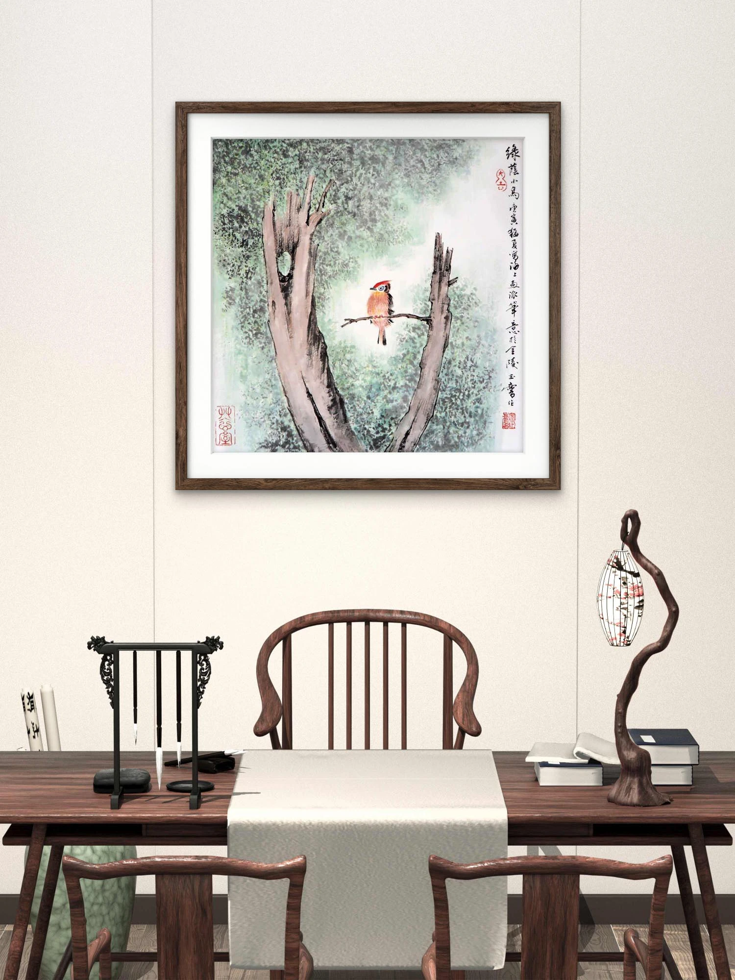 书房 / 客厅:装裱成小品镜框,挂于书桌旁或客厅雅致角落,以绿荫小鸟的生机意趣和水墨风格,营造 “鲜活灵动、意趣清雅” 的文化氛围,尤其适合喜爱文人画与水墨艺术的空间;